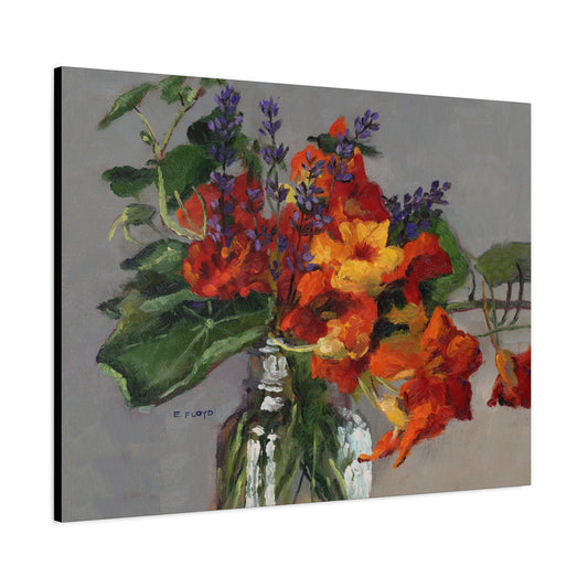 Nasturtiums and Lavender, Canvas Art Print, Stretched 1.25" Deep