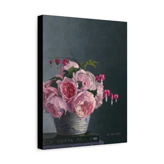 Roses and Bleeding Hearts, Canvas Art Print, Stretched 1.25" Deep
