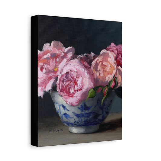 Roses in Asian Bowl, Canvas Art Print, Stretched 1.25" Deep
