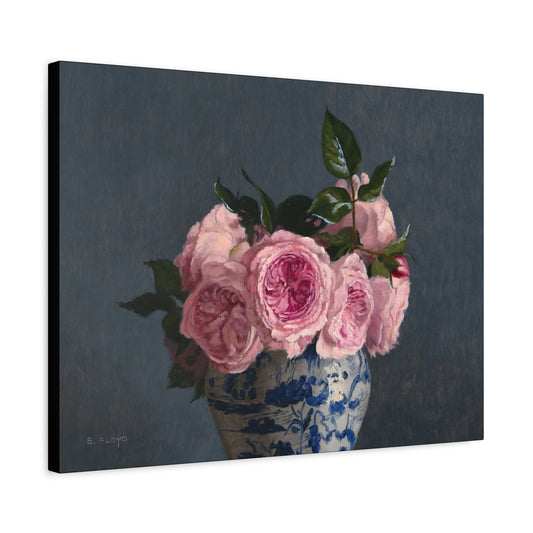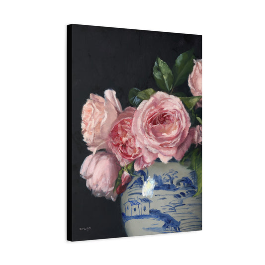 Blush Roses in Ginger Jar, Canvas Art Print, Stretched 1.25" Deep