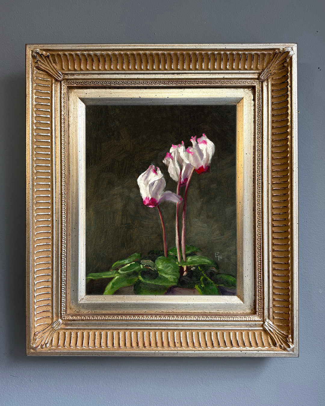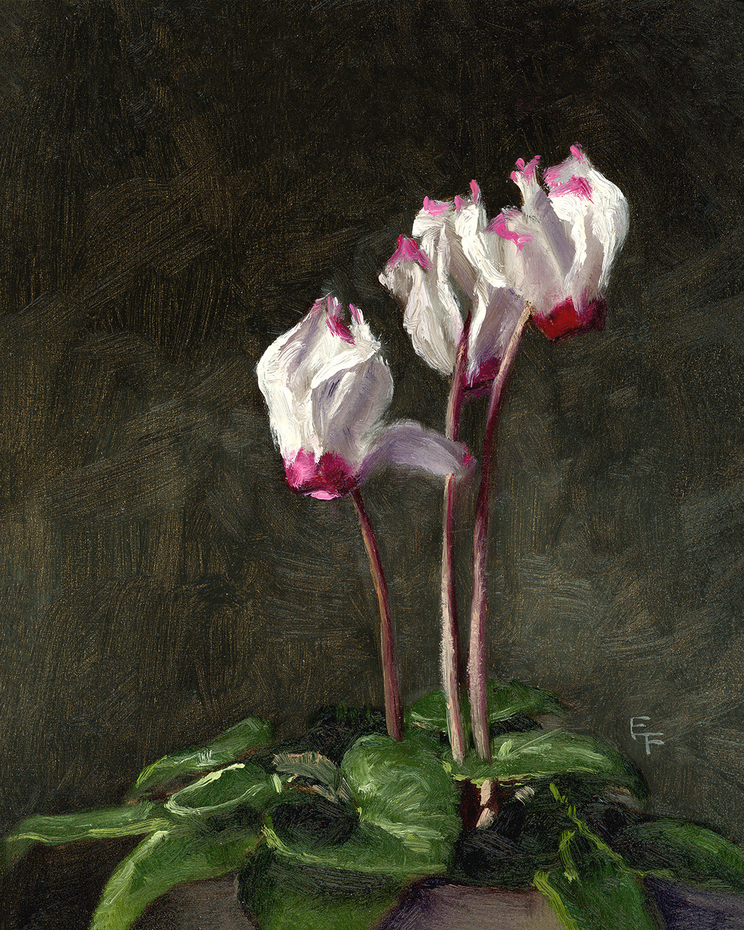 This month’s print features a reproduction of an oil painting titled, ‘White Cyclemen’